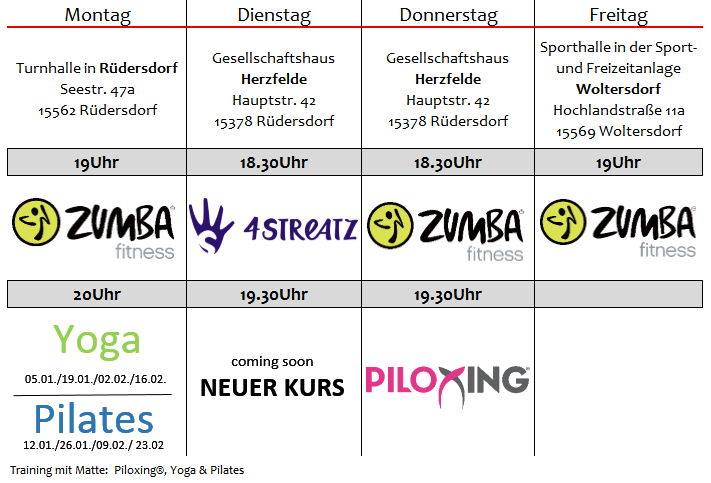 Zumba mit den superschönen Songs (viele haben Ohrwurmpotential), den tollen Choreographien unserer Tranierin Julia oder deepwork und painfreefascia mit Tessi bieten Abwechslung, Fitness, Entspannung, gute Laune und Spaß. Ich freue mich auf jede Stunde.„